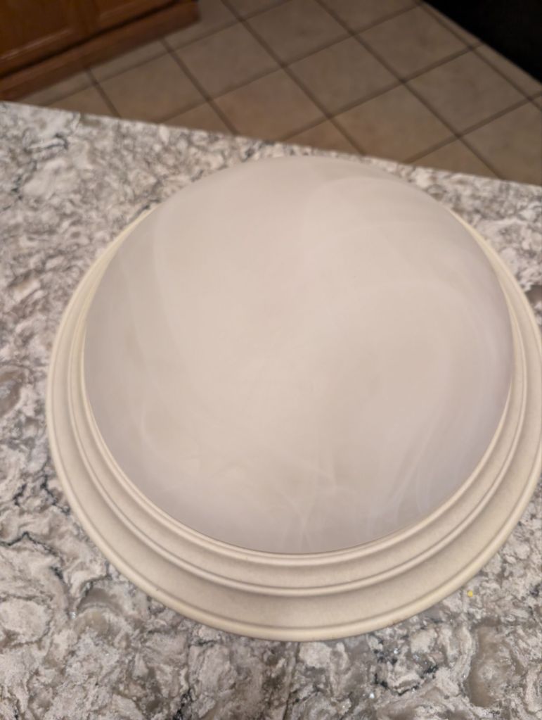 But then I looked up and noticed how yellow the ceiling had become from years of moisture. And the outdated cream light fixture.