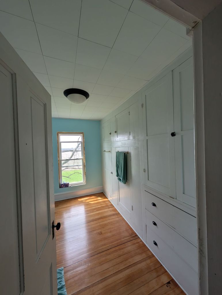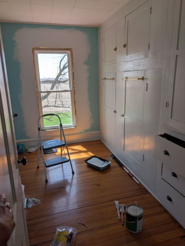 And then I figured, I’d better be thorough and paint trim. Had that paint too from the bedroom remodels!