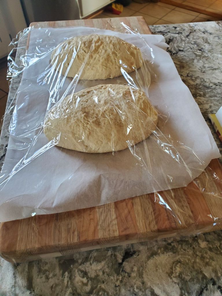 At the 1 hour mark, put a baking stone on the middle rack and place a cookie sheet on the bottom rack in the oven and preheat to 450.