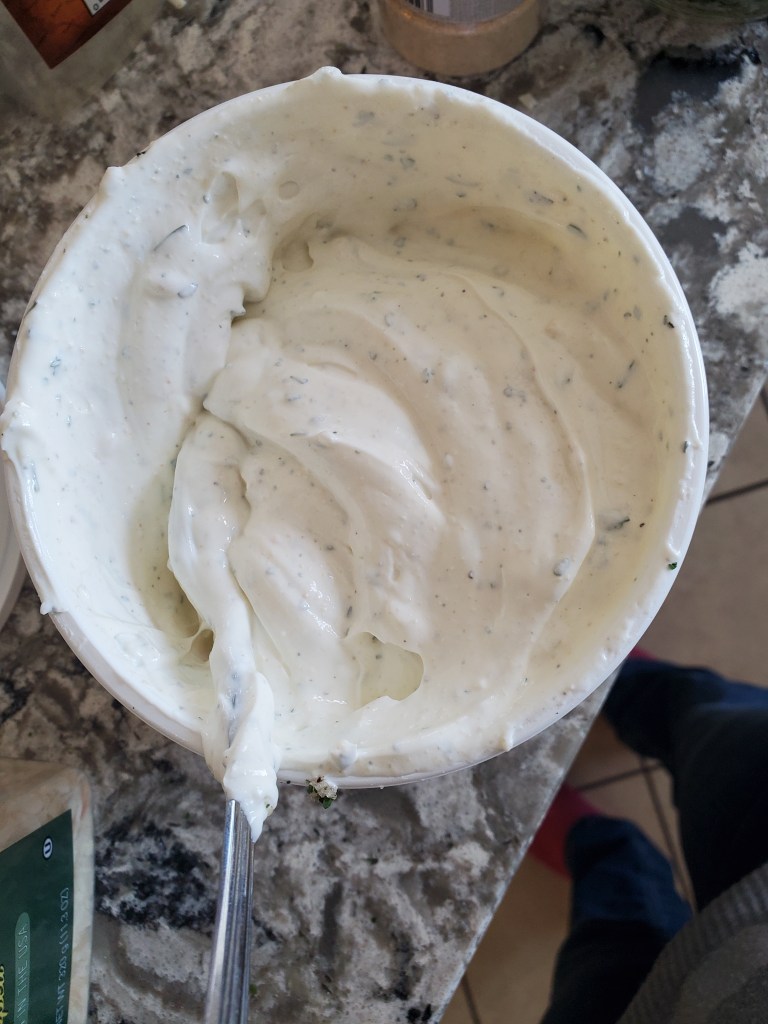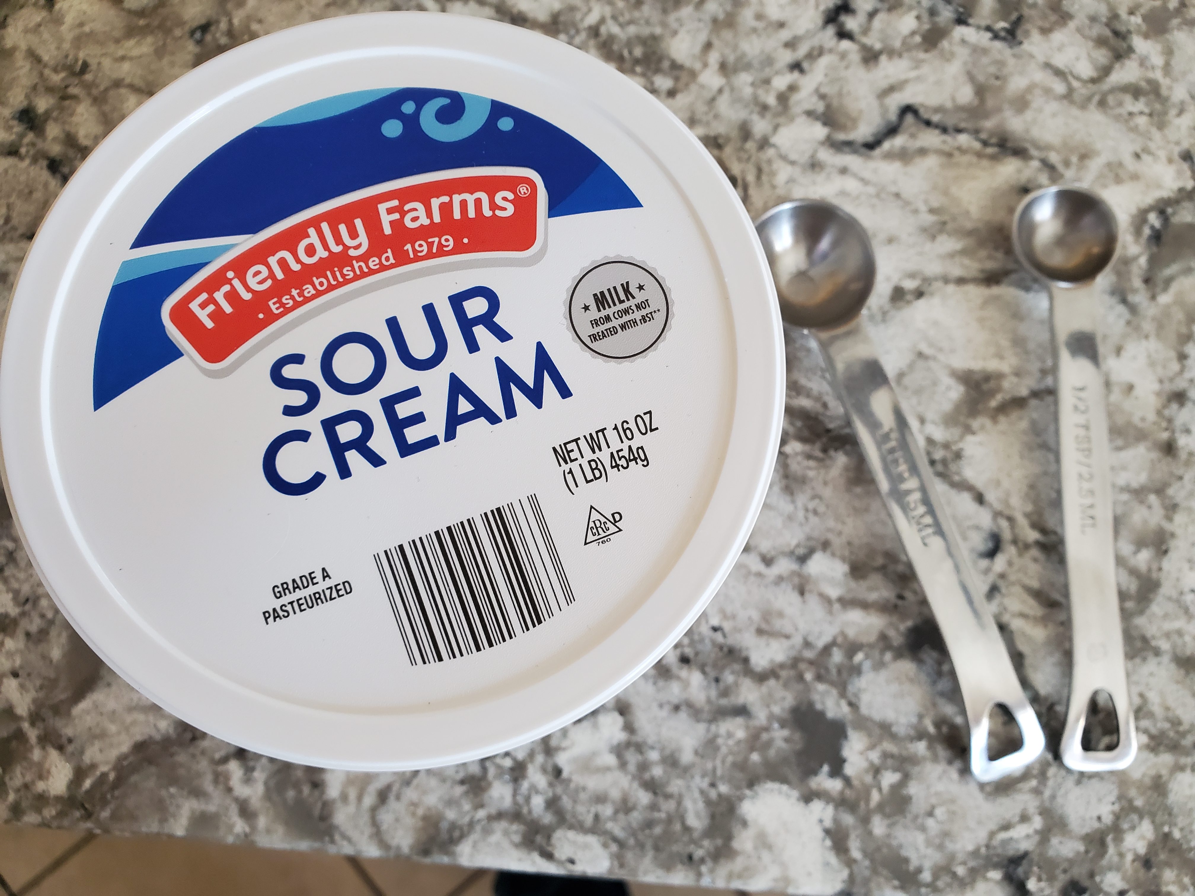 1 16 ounce tub sour cream (Aldi brand Friendly Farms sour cream has NO other ingredients but soured cream)
